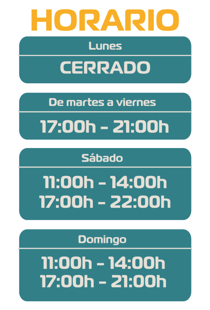 De miércoles a jueves por la tarde + sábado y domingo por la mañana: